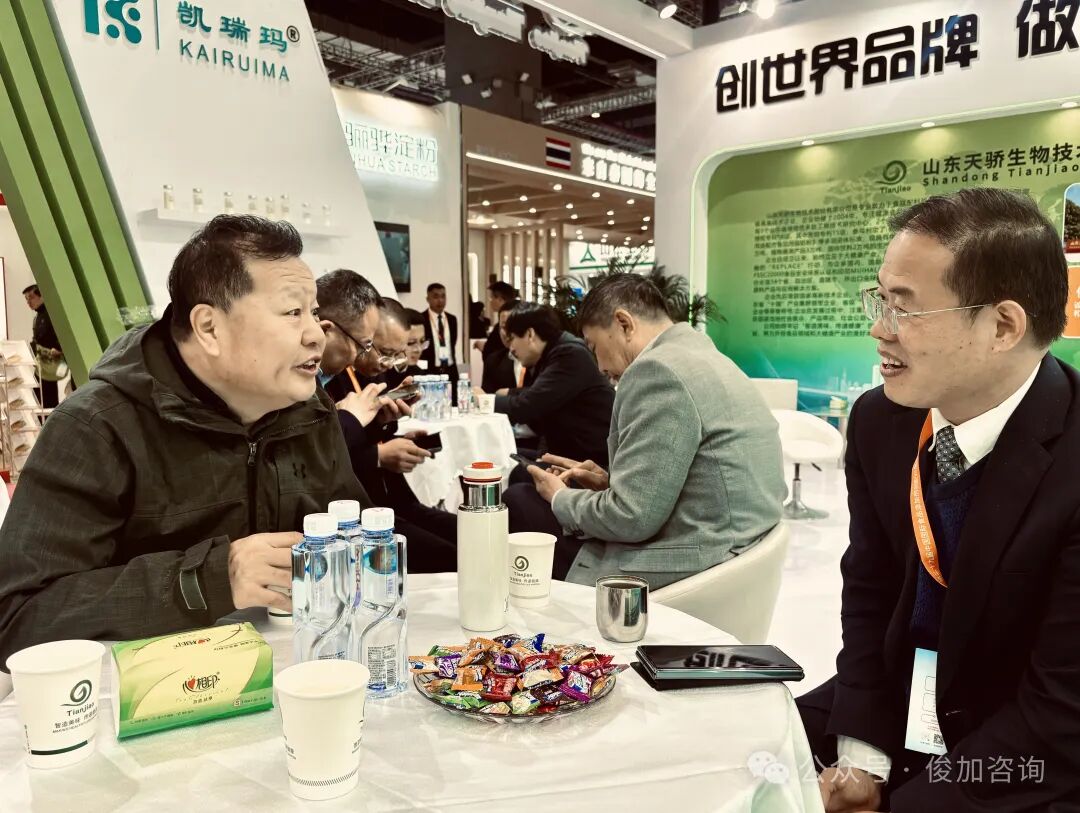 2025年3月17日,俊加咨询副董事长郭天俊先生应山东天骄生物技术股份有限公司的邀请,与知名行业专家郭树良老师一同出席了第28届中国国际食品添加剂和配料展览会。此次展会不仅是食品配料行业的一次盛会,更是行业精英们交流思想、共谋发展的绝佳平台。